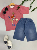 ⭐ تیشرت شلوارک جین دختر اسکیت سوار ⭐